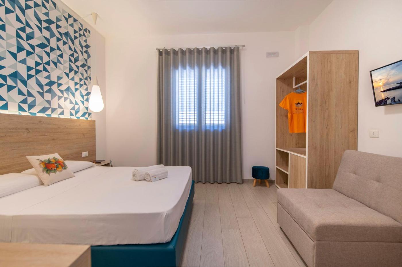 Camera Deluxe con Terrazza. Camera matrimoniale dotata di aria condizionata, ingresso indipendente, bagno privato con doccia e terrazza con vista sul giardino. L’alloggio presenta 2 letti.