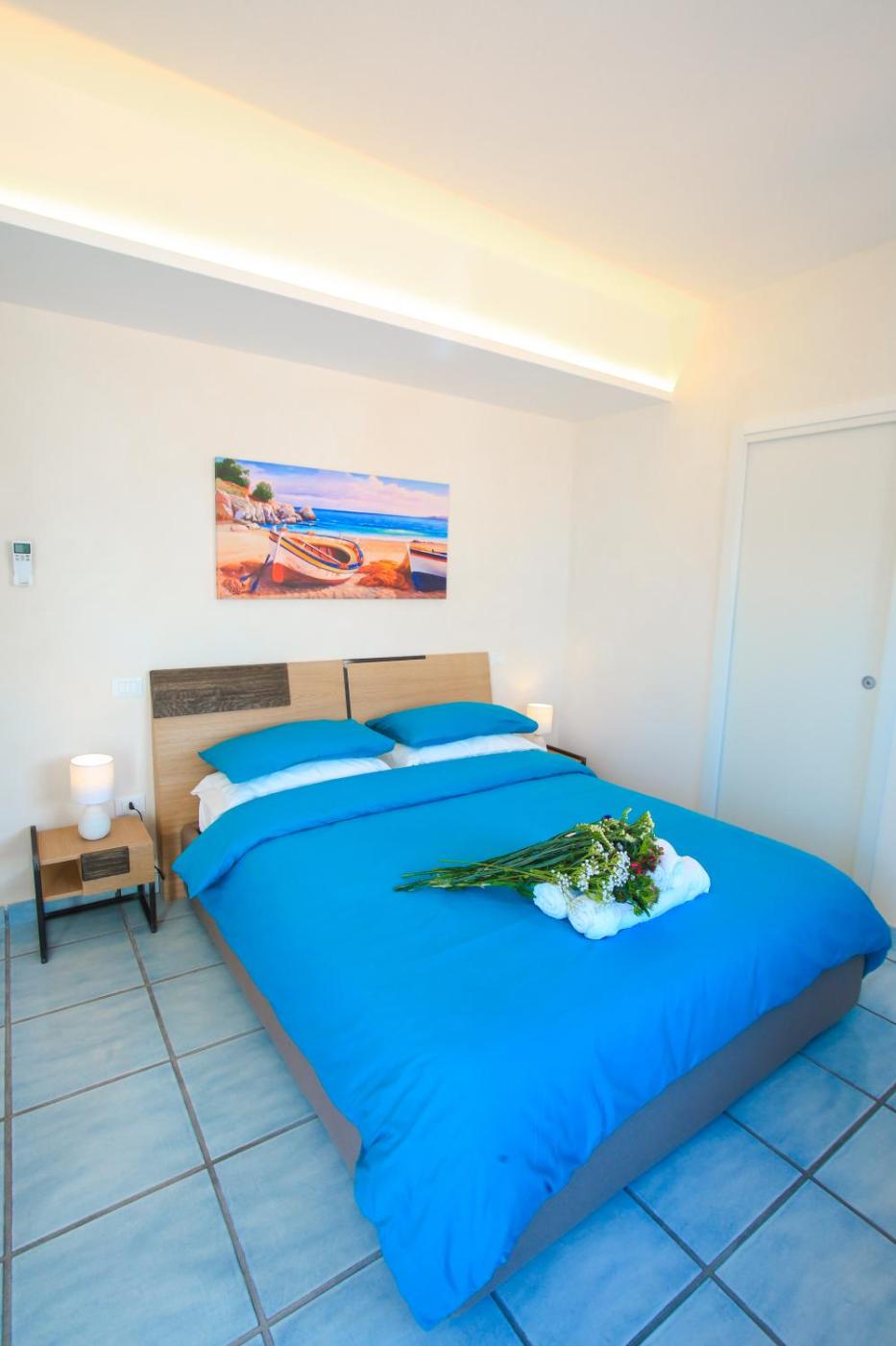 Camera Matrimoniale Deluxe con Balcone e Vista Mare. Camera matrimoniale climatizzata con ingresso indipendente, terrazza con vista sul mare e bagno privato munito di doccia. L’alloggio dispone di 1 letto. ;
