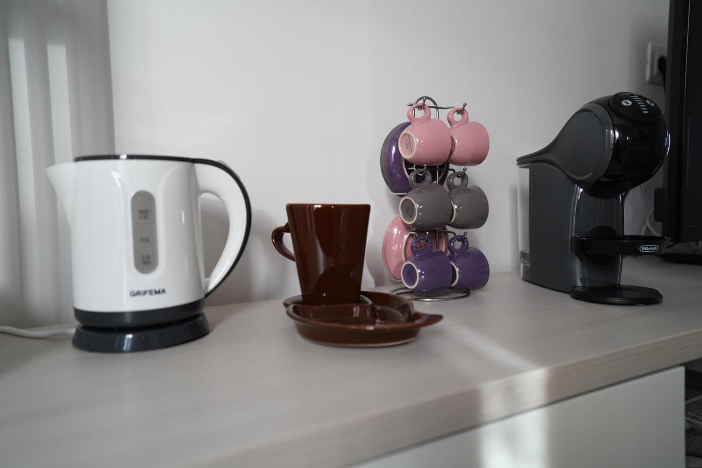 Questo bed and breakfast con aria condizionata comprende 2 camere da letto e 2 bagni con bidet, doccia edi cortesia. La cucina dispone di frigorifero, forno e microonde, più macchina da caffè e bollitore elettrico.