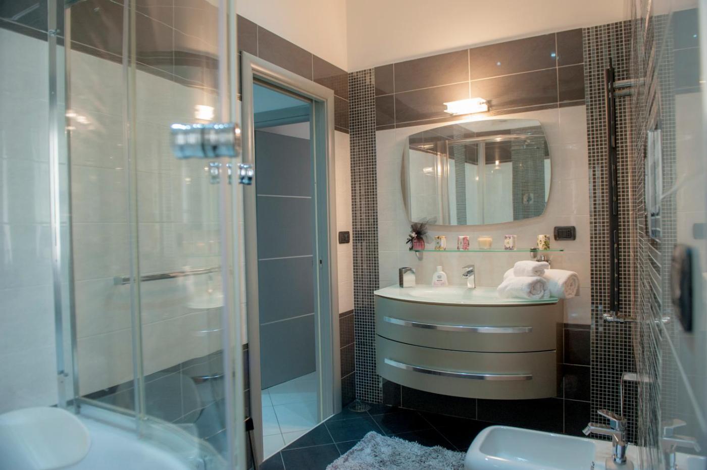 Appartamento con 2 Camere da Letto. This apartments special feature is the spa bath. This spacious apartment comprises 1 living room, 2 separate bedrooms and 2 bathrooms with a shower and free toiletries. The well-equipped kitchen features a stovetop, a refrigerator, kitchenware and an oven. The air-conditioned apartment provides a flat-screen TV, a washing machine, a coffee machine, a dining area as well as city views. The unit offers 3 beds.