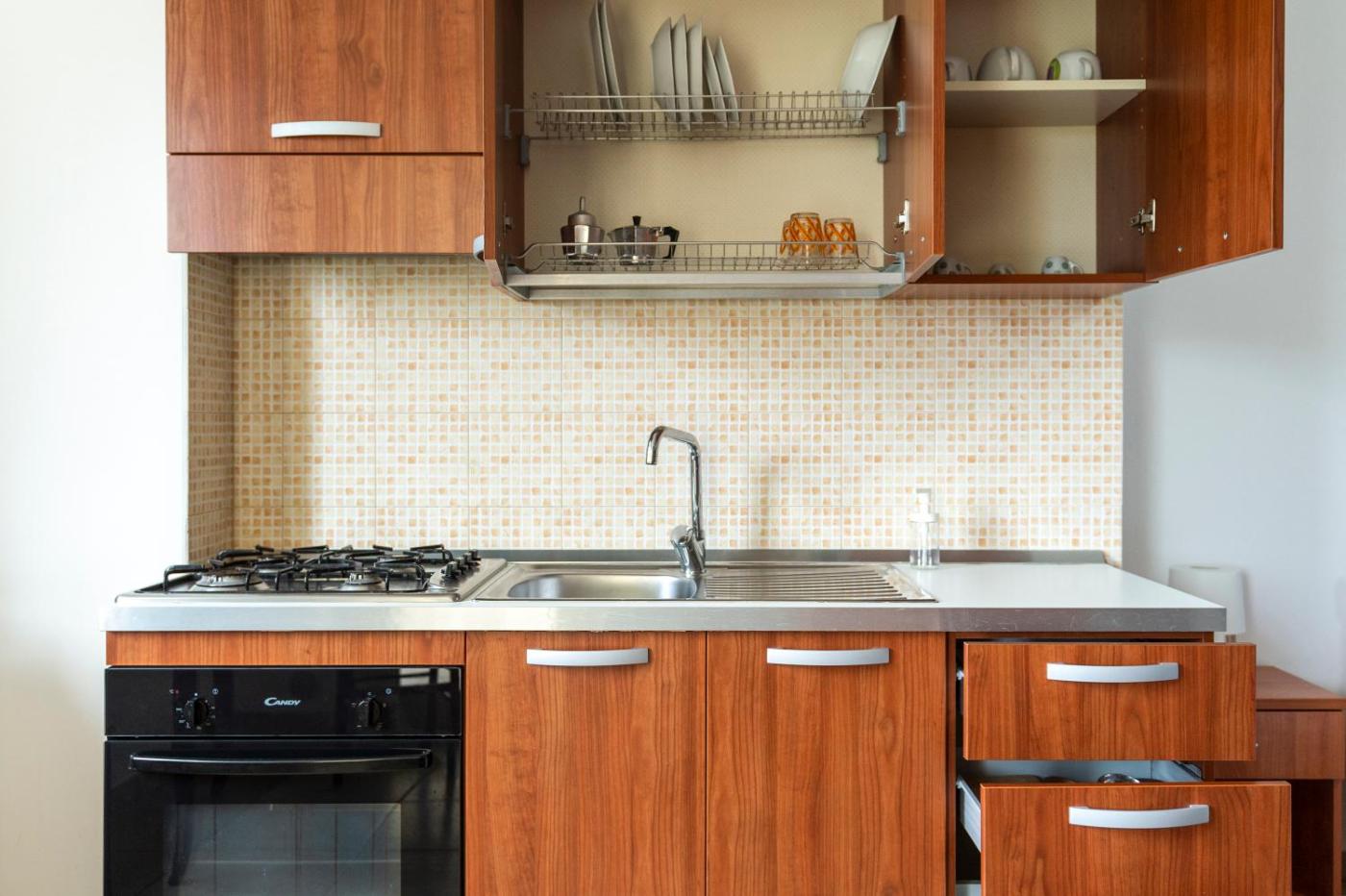 Appartamento Monolocale. Questo appartamento climatizzato offre un ingresso indipendente, 1 soggiorno, 1 camera da letto separata e 1 bagno con doccia e bidet. L’angolo cottura è ben accessoriato con fornelli, frigorifero, utensili e forno. La sistemazione dispone di area salotto, TV a schermo piatto e balcone con vista sul giardino. L’alloggio presenta 2 letti. ;