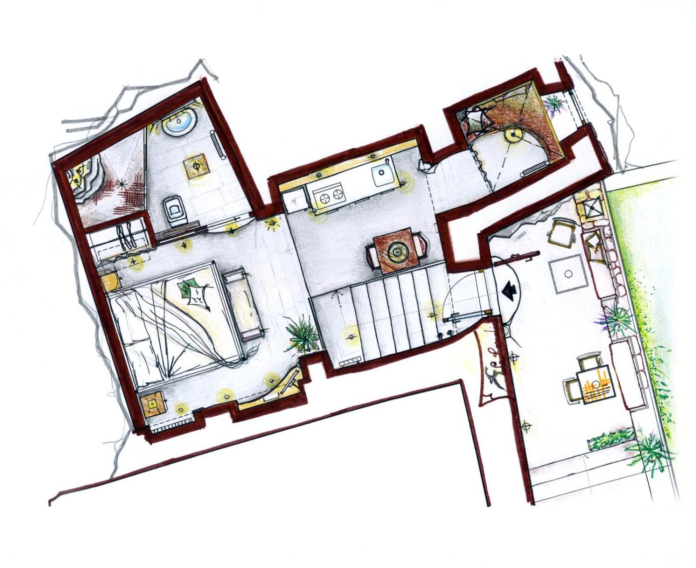 Presso questo hotel, le camere dispongono di una scrivania. Le camere hanno una macchina da caffè e un bagno privato con doccia edi cortesia, mentre alcune camere vantano anche una cucina. Presso Albergo Diffuso Sotto Le Stelle, le camere comprendono lenzuola e asciugamani.