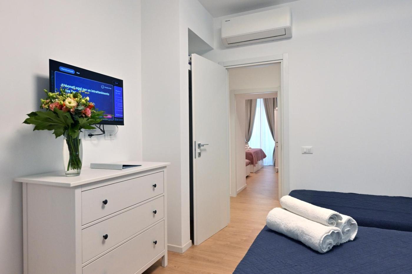 Appartamento con 2 Camere da Letto. The spacious apartment has 2 bedrooms and 2 bathrooms with a shower and free toiletries. The well-equipped kitchen features a stovetop, a refrigerator, a dishwasher and kitchenware. The air-conditioned apartment features a flat-screen TV with satellite channels, a washing machine, a coffee machine, a seating area as well as ancourtyard view. The unit has 4 beds.